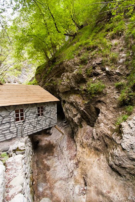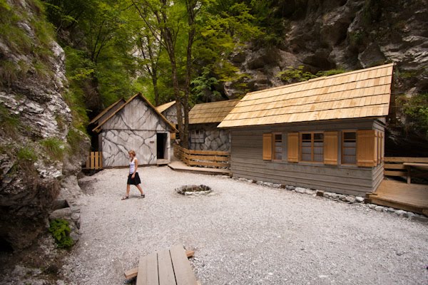 Pot v sotesko je lepo urejena, na nevarnih delih pokrita s streho, saj kamenje očitno kar redno pada v sotesko. No, preko slapiča po stopnicah in že smo pri kasi, kjer poberejo tiste fičnike in že smo notri. Potem pa je bilo seveda na vrsti firbcanje po vseh barakah. Vsaka je označena s tablico – kaj je tam bilo, v notranjosti pa so razstavljeni eksponati (žal predvsem kopije, originali so bili namreč uničeni v prej omenjeni povodnji), vendar vseeno vredno ogleda. Prav tako je v vsaki baraki tabla z dodatnimi pojasnili in zgodbami.
