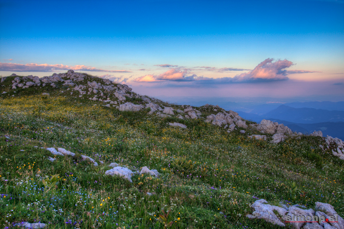 Z najdražjo sva se včeraj proti večeru odpravila na Kosmati vrh, soseda bližnjega bolj obleganega Ratitovca. Plan – slikat sončni zahod. Po sopihanju navkreber in prošnjam vse svetnikom, da ne zamudim… stojim na vrhu in gledam temne oblake, ki so se vili okrog našega očaka – Triglava – in ravno tja zadaj je moralo sonce tokrat zaiti?!? Sem pa zato preizkusil fotkanje za HDR – 3 fotke za eno – jah, kje je logika? 🙂 No ja, nekaj fotk je uspelo, mogoče malo preveč barvno nasičene, tako da sladkorni bolniki in ljubitelji č/b fotk kar mimo tega zapisa 🙂