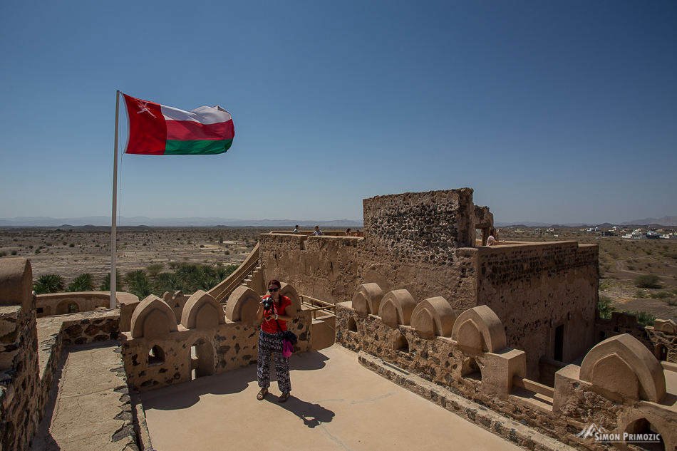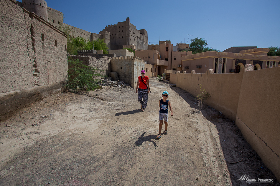Že 6 dni odkar smo šli od doma, torej smo zjutraj že nekako četrtič jedli kruh in marmelado – spet! Z 2000 mnv se odpeljemo v dolino na ogled dveh utrdb, ki ju je v tem koncu pač nujno ogledat. Prva na vrsti je bila utrdba Bahla, ki je bila zgrajena med 12. in 15. stoletjem in popolnoma prenovljena ter odprta za obiskovalce leta 2012. Utrdba je bila leta 1987 tudi dodana na Unescov seznam kulturne dediščine. No, mi smo utrdbo obiskali ravno v času, ko so jo ogledovale tudi neke šolarke in po pogledih in hihitanju po hodnikih, smo dobili občutek, da smo jim bolj zanimivi mi, kot pa utrdba sama. 🙂 Saj ne, da so z Brino naredile cel intervju, vse skupaj posnele s kamero, midva z malim pa sva v ozadju sedela na stopnicah kot statista. 😀