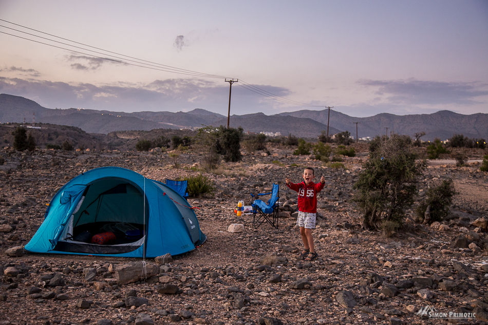 Malo smo se izgubljali ob iskanju točke, kjer smo želeli prenočiti – smo imeli že prej v knjigi Oman off-road označene možne prostore za nočitev, a tega nekako nismo našli. Pozneje smo le ugotovili, da na tistem mestu sedaj gradijo hotel z enkratnim razgledom na dolino. No, mi smo potem le našli nek odmaknjen kotiček, kjer smo hitro nabrali nekaj vejevja za večerni ogenj in postavili šotor.