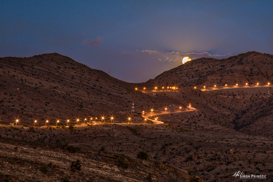 Od kamp prostorčka je bil tudi fantastičen razgled na vijugasto cesto po kateri smo se pripeljali prek grebena, ko pa se je izza hriba prikazala še polna luna, je bil pogled naravnost čudovit.