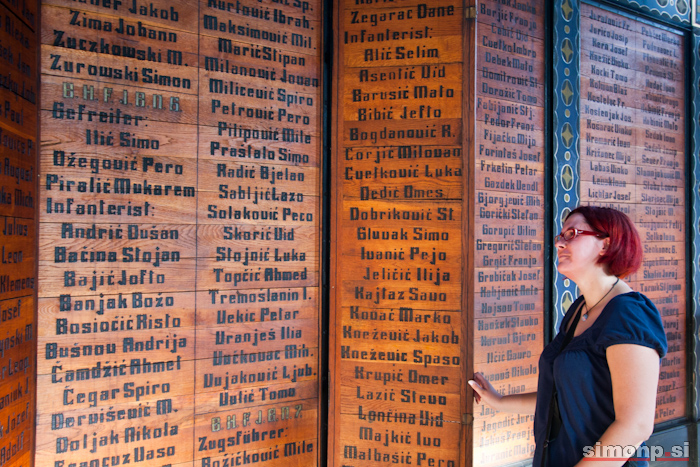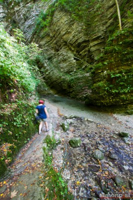 Pa nisva imela dolgo “samote”, saj so se nad nama kar hitro nagužvali obiskovalci, tako da sva se hitro povzpela nazaj na pot in se prebijala na poti ven… K slapu se je namreč ravno takrat usul cel avtobus obiskovalcev… Sva imela res srečo, da sva bila tam ob pravem času – glede na kopalke in brisače so se imeli namen tam celo kopati – zmrzovati 😀 Sicer pa to niti ni bil še konec najinega izleta,… Sva se odpeljala še na Kolovrat, tretjo obrambno linijo italijanskih vojakov na Soški fronti. Se pripeljeva gor, stopiva iz avtomobila in iščeva kakšne informativne table, da se odločiva če se splača sprehajati po tej vročini po nekdanjih položajih. Table nobene – se odločiva da nadaljujeva na najin naslednji cilj. Kaj pa vem, preden se namenim kuhat po vročem soncu bi vseeno rad videl kaj me čaka?! Kakšna tabla z osnovnimi informacijami bi bila kar dobrodošla. No ja, vse je za nekaj dobro… Kot sva kasneje ugotovila, bi zamudila najin naslednji cilj, če bi se potepala po Kolovratu – ki pride na vrsto drugič.