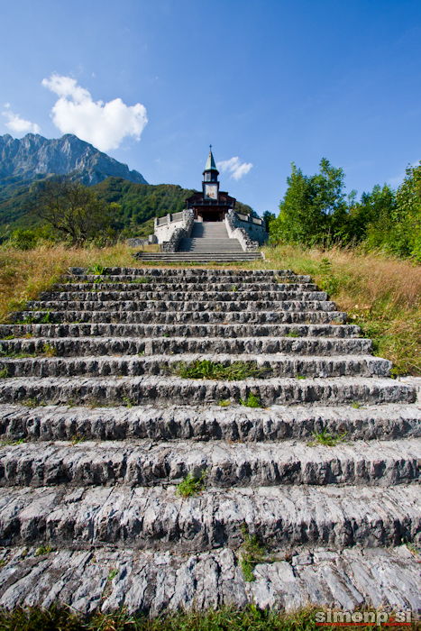 Večinoma lesena se dviguje na hribčku nad planino Polog. V notranjosti so na stene, ki so narejen iz “podnov” lesenih zabojev za municijo, lično vžgana imena vojakov padlih v bojih na okoliških vrhovih. Marsikateri vojak, ki je vžigal imena svojih padlih soborcev je žalostno končal nepotrebni boj in njegovo ime je bilo vžgano v soško knjigo mrtvih.