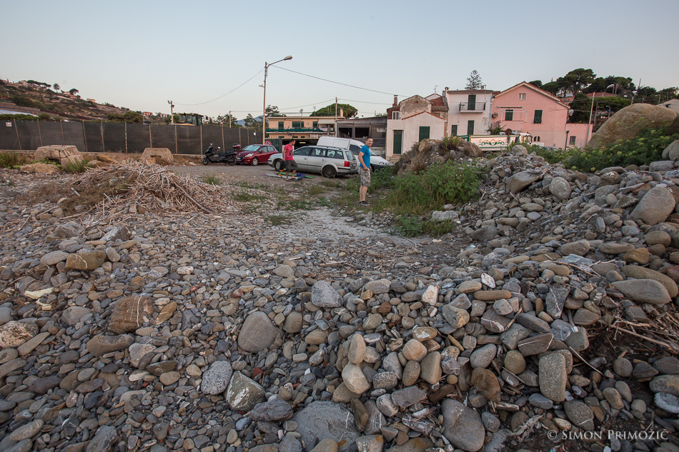 Prvi cilj San Remo smo dosegli sredi noči in po kakšni uri furanja po obrobju mesta le našli kotiček, kjer smo parkirali in se spravili k počitku. Jaz in Anže v spalke ob avtu, vojak Peter pa pravi da ga ni čez udobje avtomobila in se je zleknil kar na sovoznikovem sedežu. Jutro je bilo čisto prehitro za nas, pa še en striček naju je z Anžetom skoraj povozil, ko je očitno prišel v službo in malo po šumahersko zapeljal okrog našega avta… Konec dober vse dobro, nekaj kislih nasmeškov en drugemu pa je šlo. A sva se z Anžetom vseeno na brzino spokala iz spalk. 🙂