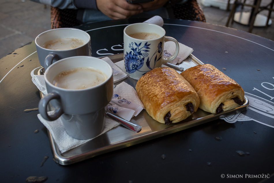 En kafič se je že odpiral, a so nas cene odvrnile od kavice tam in smo se raje odpravili nižje, kjer smo po sprejemljivih si po sprejemljivih cenah privoščili kafe.