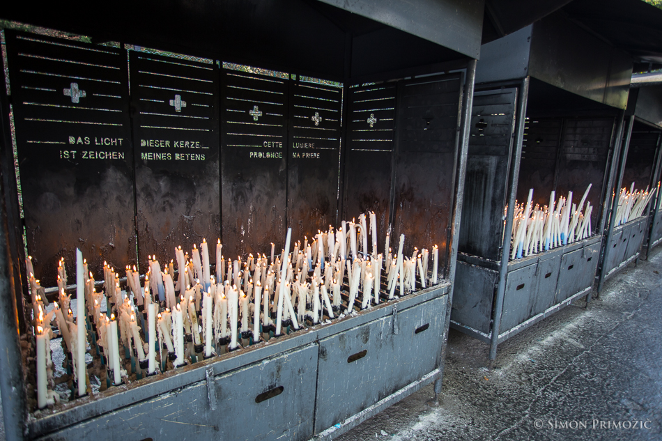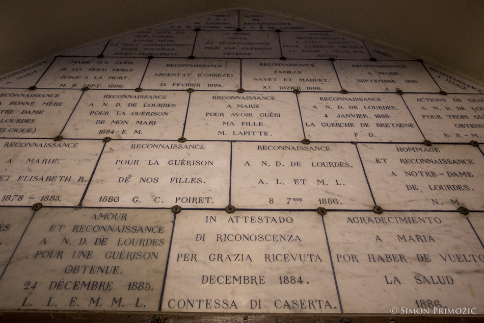 Baje da Lurd obišče preko 5 milijonov obiskovalcev letno in tudi ob našem obisku je bilo kar precej romarjev. Za sprehod mimo/skozi votlino pa dooolga vrsta. Biznis pa imajo dobro urejen… Najprej ti pdorajo svečo, jo prižgeš v za to namenjenih prostorih, kjer sveča pogori, vosek pa se steka v spodnje posode, ki jih potem odpeljejo nazaj v svečarno… ni kaj, odličen posel. 🙂